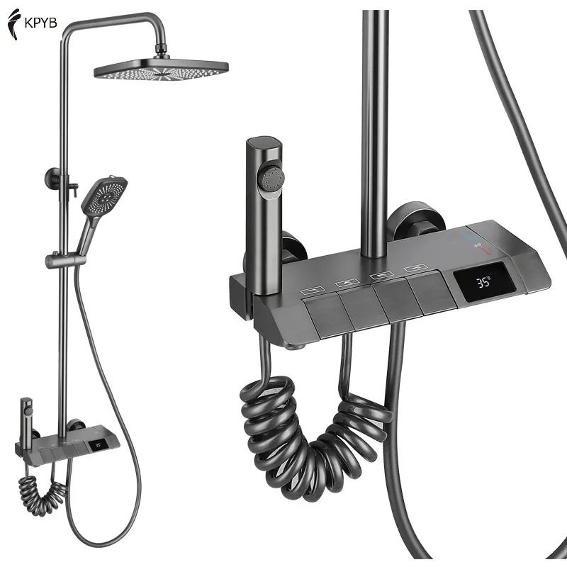 Piyano Duş Seti Diğital Antrasit, banyonuzda modern bir görünüm oluşturmak için tasarlanmıştır. Ürünün dijital dokunmatik ekranı, suyun sıcaklığını ve akış hızını ayarlamanıza olanak tanır. Böylece, mükemmel bir duş deneyimi yaşayabilirsiniz. Ayrıca, dişli pirinç gövde ile ürünün dayanıklılığı da daha da arttırılmıştır.