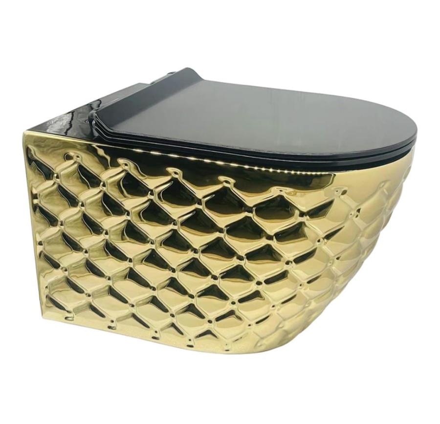 Modern ev tasarımında şıklık ve zarafetin en iyi örneklerinden biri olan siyah gold klozeti sizlere sunuyoruz. Bu eşsiz klozet, her banyoya çağdaş bir hava katarken, kullanıcılara konforlu ve estetik bir deneyim yaşatmayı hedefliyor.